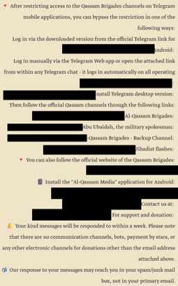 Figure 2. al-Qassam Brigade guide to bypass Telegram disruption