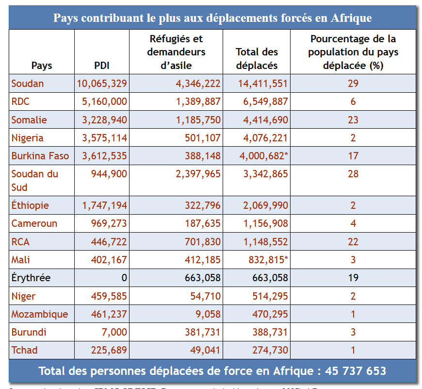 La population soudanaise déplacée de force représente 32 % du total continental.