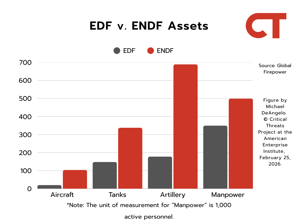 Eritrean support for the TPLF helps prevent Ethiopia from following through on its threats to annex Assab. The ENDF has limited options to launch offensives against Eritrea, as the TDF’s presence constrains the ENDF to the Afar-Eritrea border. The TDF is also a force augmenter for the Eritrean Defense Forces (EDF), as the TDF has over 250,000 fighters with heavy artillery and tanks.[xlvii] The EDF reportedly has 350,000 active personnel compared to the ENDF’s over 500,000, according to GlobalFirepower.[xlviii] The EDF also possesses significantly less air and land assets, including artillery, fighter aircraft, drones, and tanks.[xlix] The EDF relies heavily on Soviet-era equipment, while the ENDF has undertaken an extensive modernization.[l] Eritrea and Ethiopia have already come close to direct interstate conflict recently, with Eritrea launching a nationwide military mobilization in February 2025 and both countries massing forces at their shared border in March 2025 following the TPLF power grab.[li]