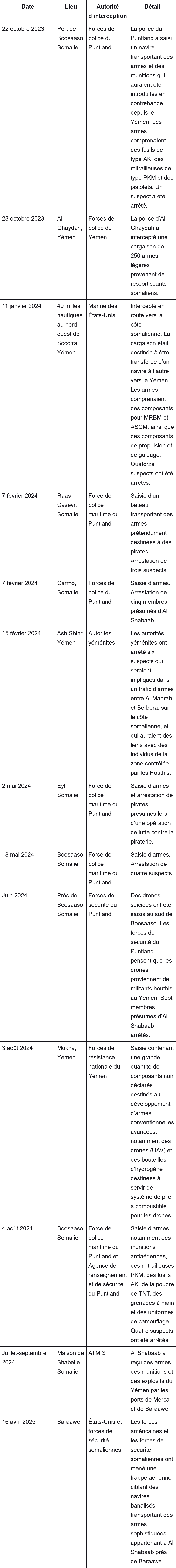 Exemples d’interceptions d’armes entre la Somalie et le Yémen depuis octobre 2023