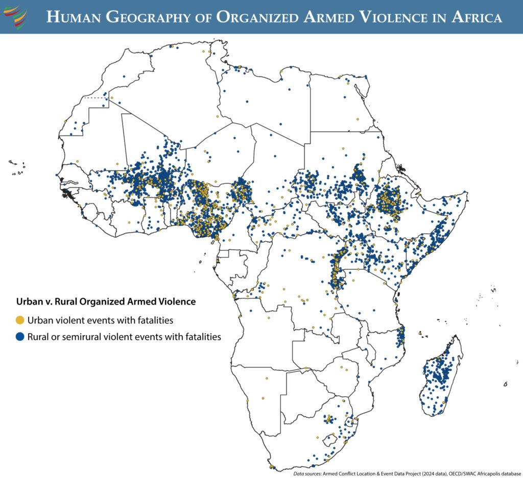 587 of 4,930 African cities suffered fatalities linked to organized armed violence in the past year. This figure has been rising in recent years, indicating that Africa’s urban areas are progressively becoming a target in the continent’s civil wars or entrenched insurgencies.