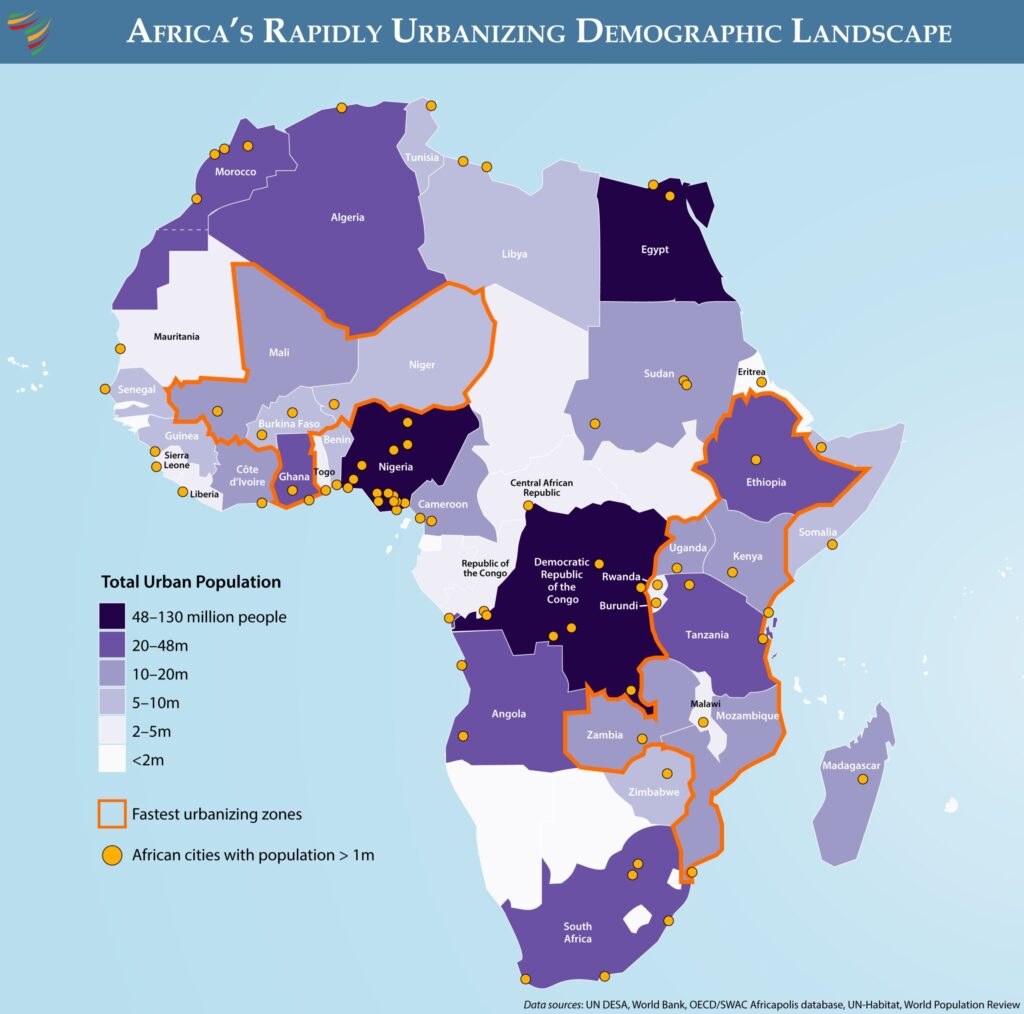 Nearly half of Africans—over 700 million people—already live in urban areas, a number projected to double to 1.4 billion by 2050. This pace of urban expansion is unprecedented in human history—and portends fundamental shifts in security requirements.