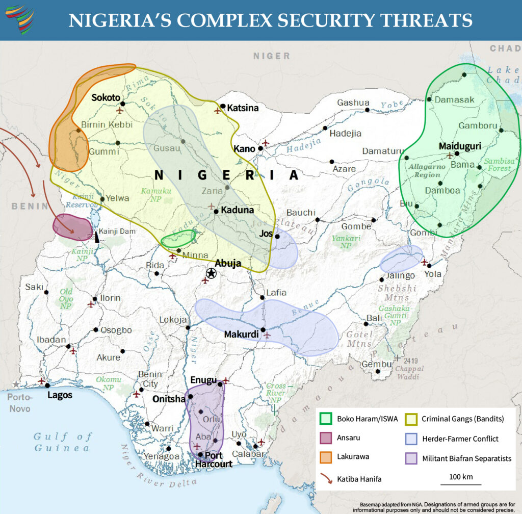 The Nigerian government must navigate the expanding threat in the north while addressing a host of other ongoing security challenges, including farmer-herder violence in its Middle Belt that inflames Christian-Muslim tensions, a violent separatist movement in the south, riverine and coastal piracy, and cybercriminal groups that scam victims around the world.