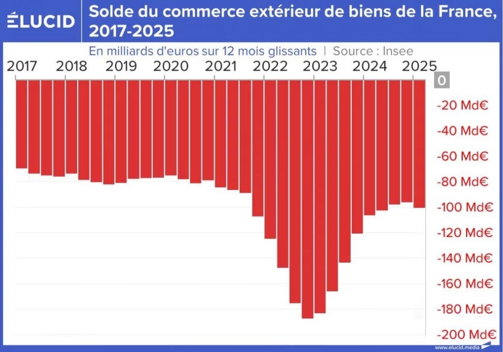 Et tout ceci n’est guère étonnant puisque les causes qui ont conduit notre pays dans cette situation sont toujours là. Nous partageons toujours la même monnaie que les Allemands. Nous sommes toujours en régime de libre-échange et de libre circulation des capitaux. La lente dégradation de notre économie qui a été produite par ces choix ne fait que continuer. La politique de l’offre qu’a pratiquée Macron pendant ses deux mandats n’a rien inversé du tout, ces politiques ont peut-être même accéléré le phénomène. En effet, dans un cadre totalement libre en matière de capitaux et de marchandise pour quoi investir aujourd’hui en France ? Même si vous supprimez les charges sociales, comme les démagos du libéralisme le proposent parfois, le travailleur français moyen resterait non compétitif avec un bulgare, ou un roumain. Si vous êtes une entreprise rationnelle, vous utilisez donc les moyens nouveaux distribués par l’état soit par des subventions ou des baisses de charge pour délocaliser encore plus vite votre production. C’est exactement ce qui s’est passé sous Macron. Et ce n’est pas la nouvelle Twigo électrique qui sera produite en Slovénie qui va changer la donne.
